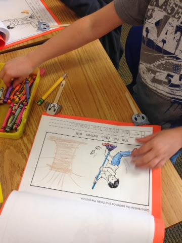 This week during writing we practiced using capitol letters at the beginning of sentences and putting punctuation at the end. To help us remember we made Punctuation Pup and Capitol Cat. The kiddos lay them down in the correct spots to check to make sure they have not forgotten them. Below are a couple picture of the kids using them.